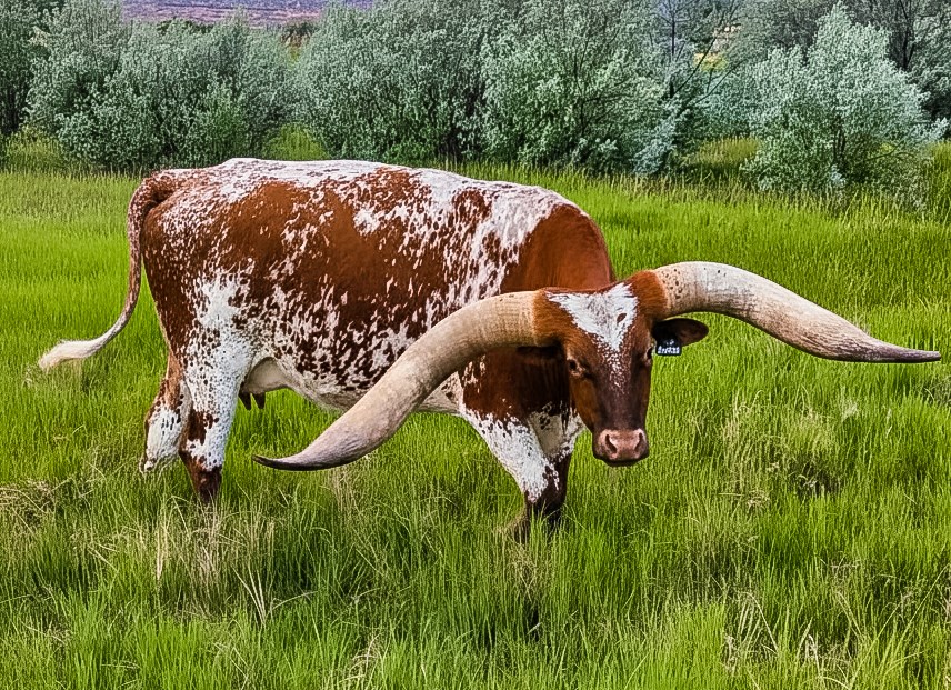 TCC Frosty is a beautifully marked Texas Longhorn female backed by a pedigree full of influential horn-producing genetics. She is sired by Fifty-Fifty BCB, a well-known bull carrying the strong influence of Bandera Chex and Peacemaker 44, two highly respected sires in the Texas Longhorn breed known for producing exceptional horn growth and breed impact. On the maternal side, Frosty carries genetics from Swag N Spur BCB, tracing back to JP Rio Grande and Rio Blanco Chex, adding depth, structure, and additional horn-producing power to her pedigree. With multiple generations of proven Longhorn sires in her lineage, Frosty represents a strong female foundation with balanced genetics and excellent pedigree depth.